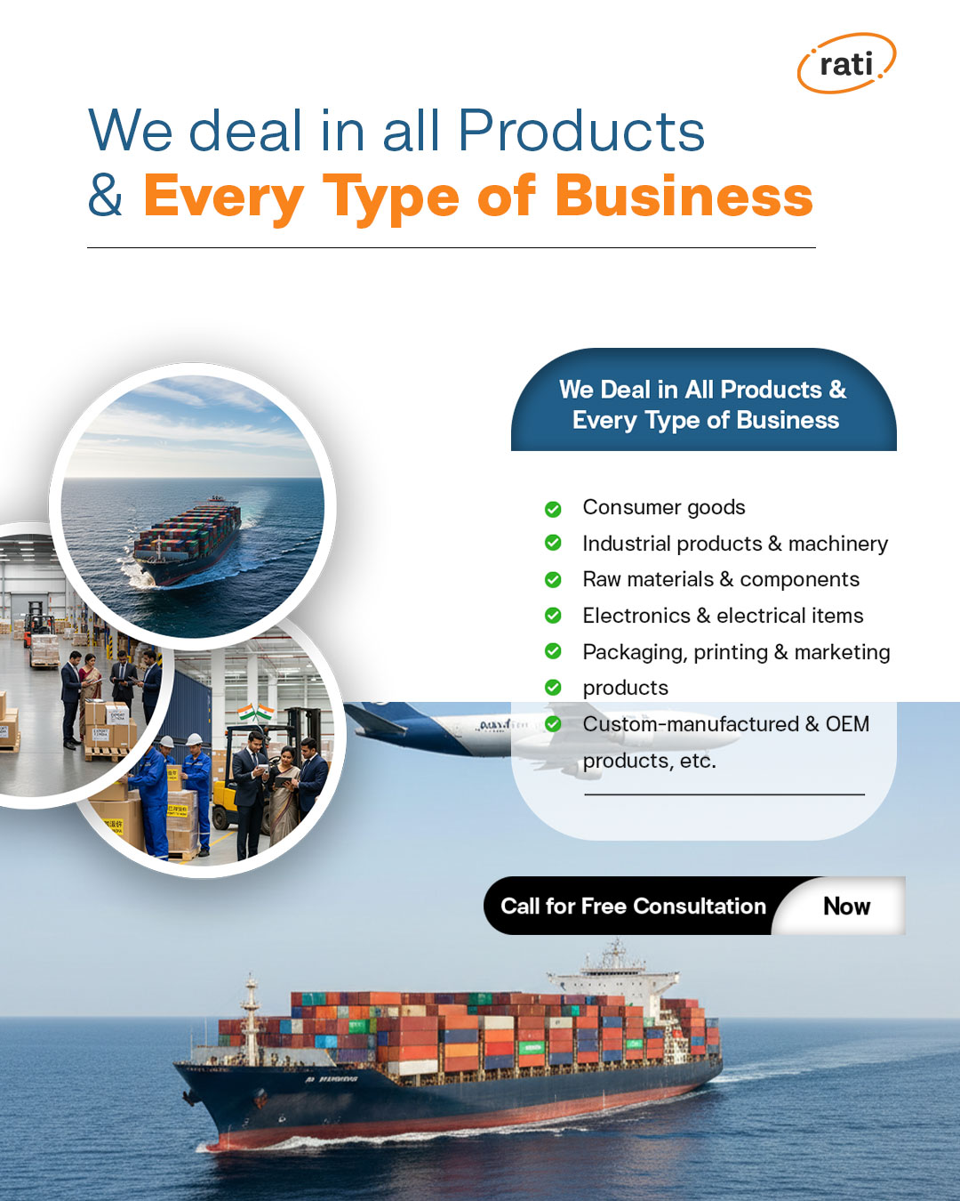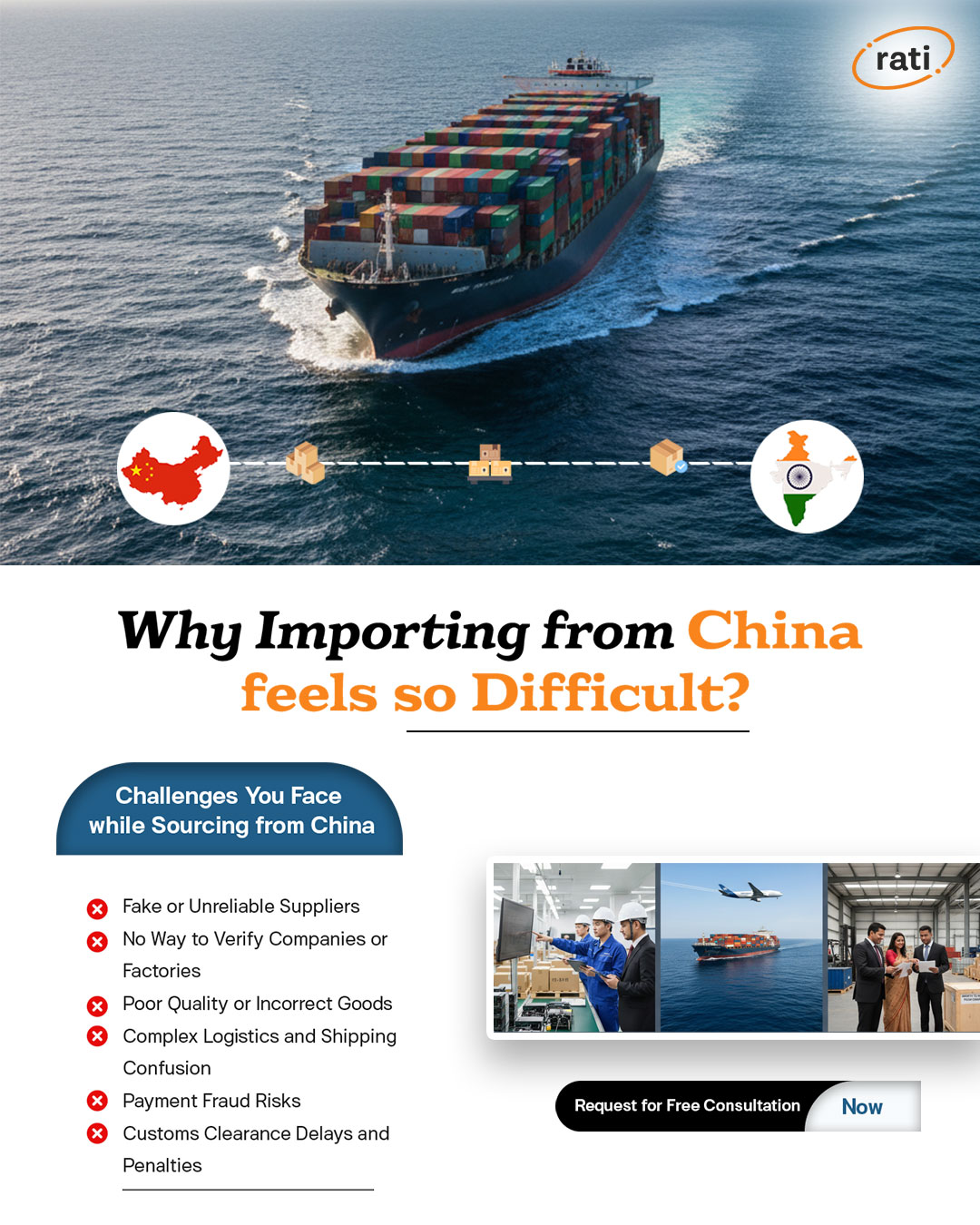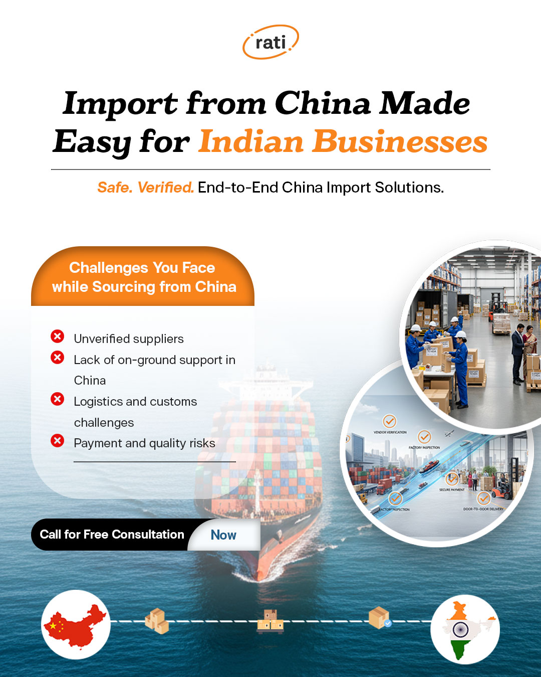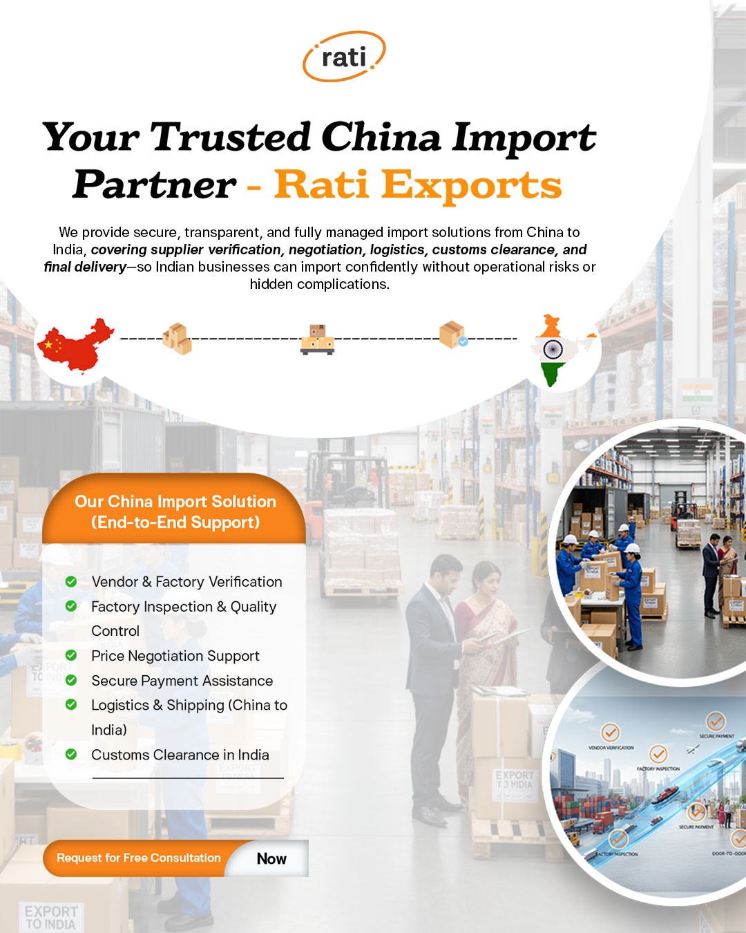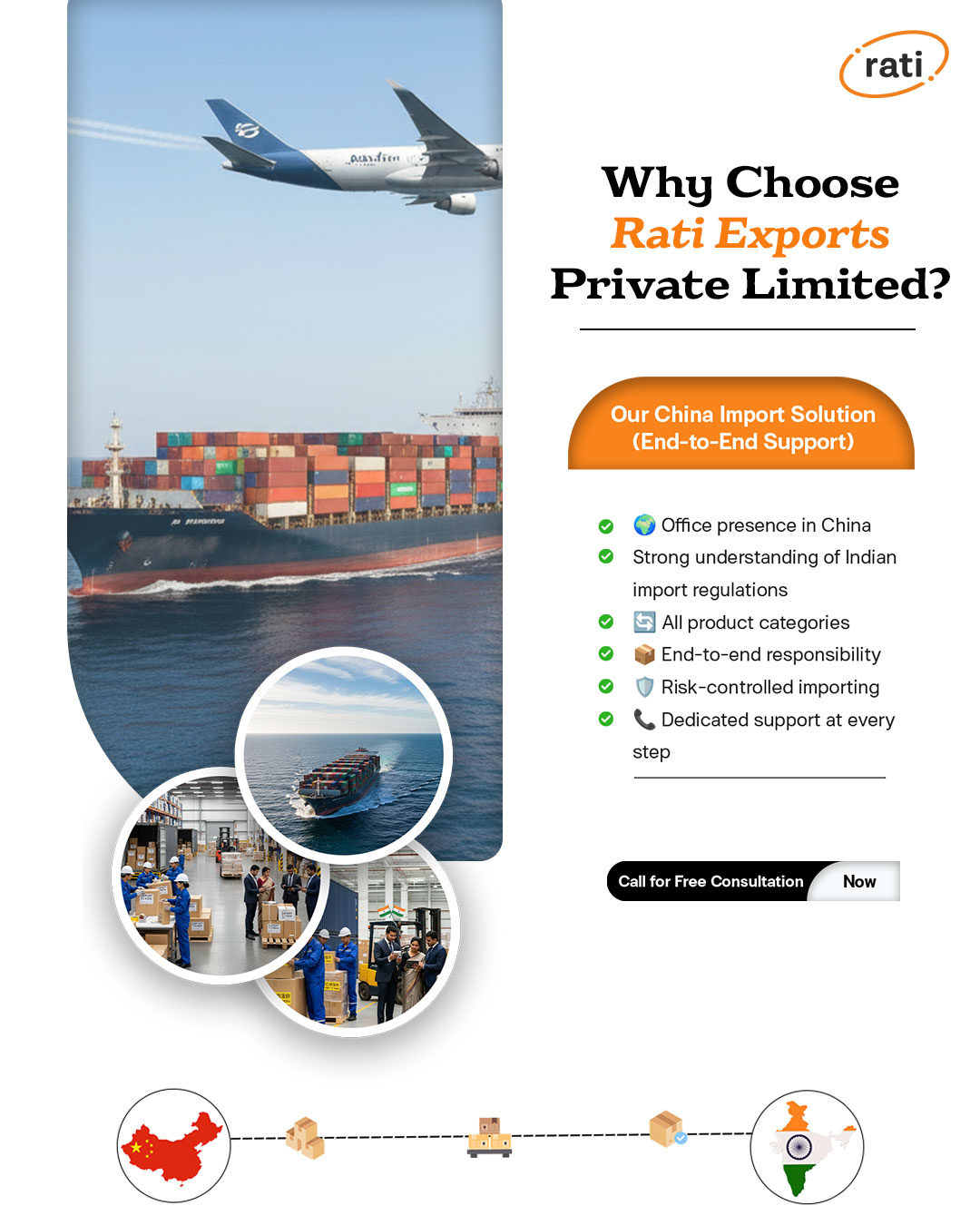 Whether you are importing one product or multiple categories, whether you are a startup, trader, manufacturer, or enterprise— Rati Exports Private Limited is your trusted China import partner.